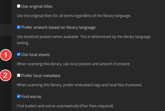 When scanning this library, use local posters and artwork if present. (Local subtitles files will be used whether this is enabled or not)