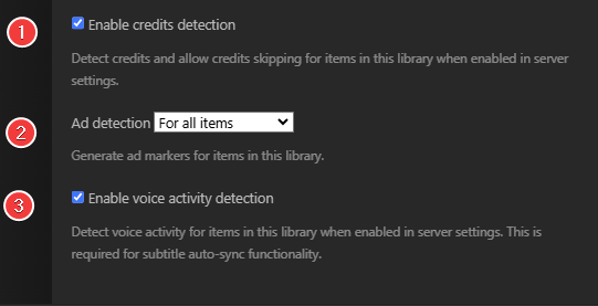 In some cases, you may have more than one library and perhaps it doesn’t make sense to do this detection for all of your libraries. For any individual library, you can choose whether or not content in that library is included in detecting credits.